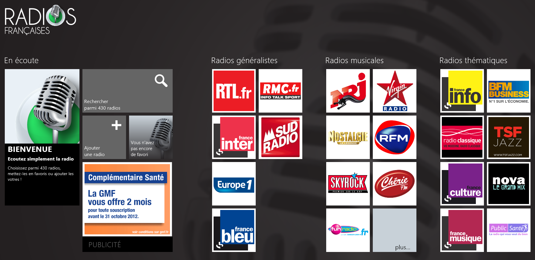 Je vous propose de découvrir l’application Win8 « Radios Françaises » Créée par TODAE MEDIA, elle vous permettra d’écouter toutes vos radios favorites et d’en découvrir de nouvelles.
